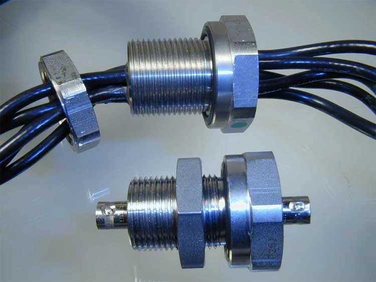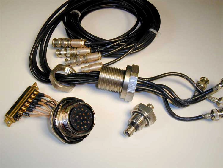 Versions available include BNC, SMA, SHV, MHV, N, and Triaxial with floating or grounded shields for pressure or vacuum uses. In addition, any type of coaxial or shielded cables can be hermetically sealed in almost any combination or length. Multi-pin coaxial PAVE-Mate connectors are also available for up to 29 shielded contacts.